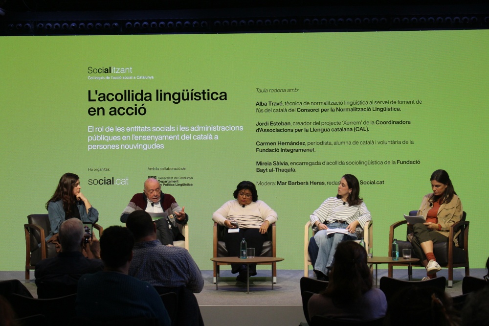 La taula rodona ha comptat amb la participació d’Alba Travé, Consorci per la Normalització Lingüística; Jordi Esteban, creador del projecte ‘Xerrem’ de la Coordinadora d’Associacions per la Llengua catalana; Carmen Hernández, periodista, alumna de català i voluntària de la Fundació Integramenet i Mireia Sàlvia, Fundació Bayt al-Thaqafa; amb moderació de la periodista Mar Barberà. Totes elles han aportat mirades complementàries sobre reptes, bones pràctiques i noves estratègies per reforçar el català com a llengua d’acollida.